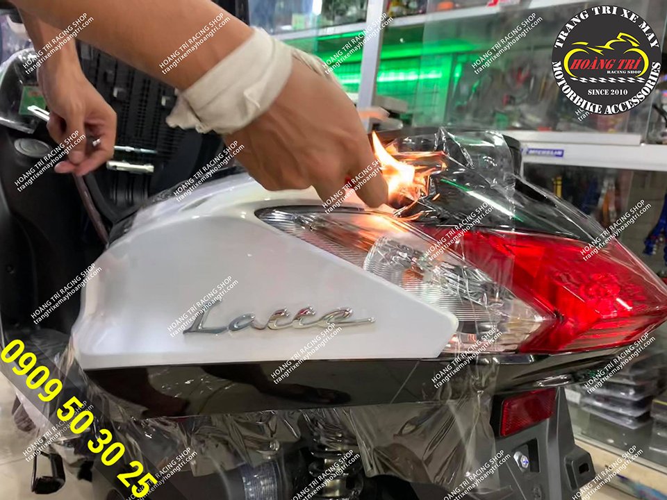 Đội ngũ nhân viên đang chăm sóc chiếc Yamaha Latte đến dán keo xe